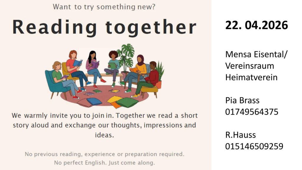 Am 22.04.2026 gibt es die unkomplizierte Möglichkeit, in offener Runde englische Literatur gemeinsam mit anderen zu erleben.